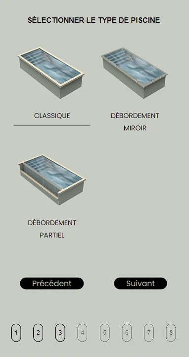 L’innovation majeure du projet réside dans le développement d’un simulateur de devis piscine entièrement optimisé pour le référencement naturel. Ce module permet aux prospects de configurer leur projet en ligne tout en générant du contenu dynamique indexable par Google. Les mots-clés ciblés incluent « devis piscine en ligne« , « simulateur prix piscine« , « estimation construction piscine« , positionnant Maui Piscine sur des requêtes à forte intention d’achat.