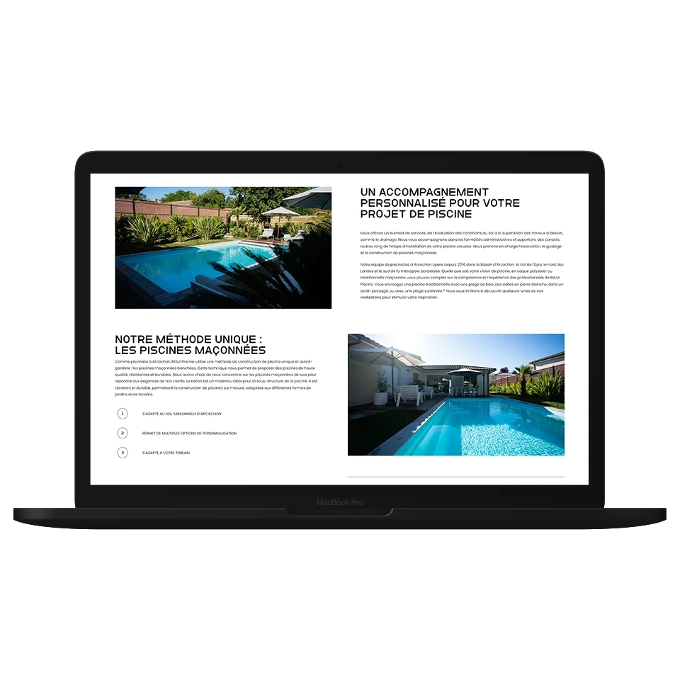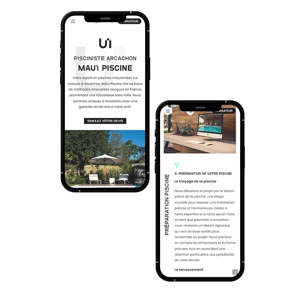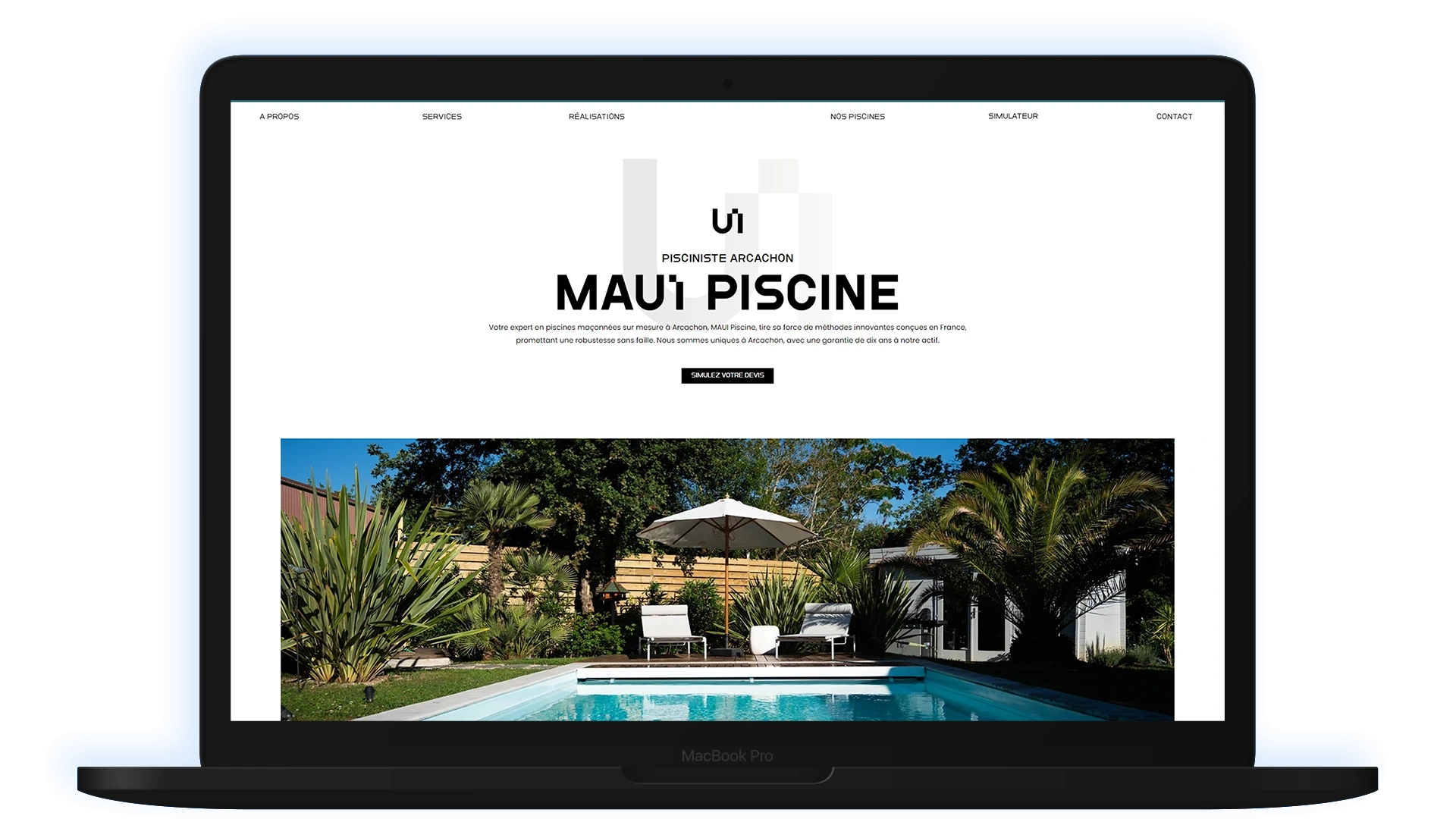Le Défi : Maui Piscine possédait un site vitrine basique qui ne générait aucune demande de devis et ne valorisait pas leur expertise dans les piscines maçonnées haut de gamme. L’entreprise, initialement positionnée sur le Bassin d’Arcachon, souhaitait étendre sa zone d’intervention sur toute la Gironde, notamment Bordeaux.