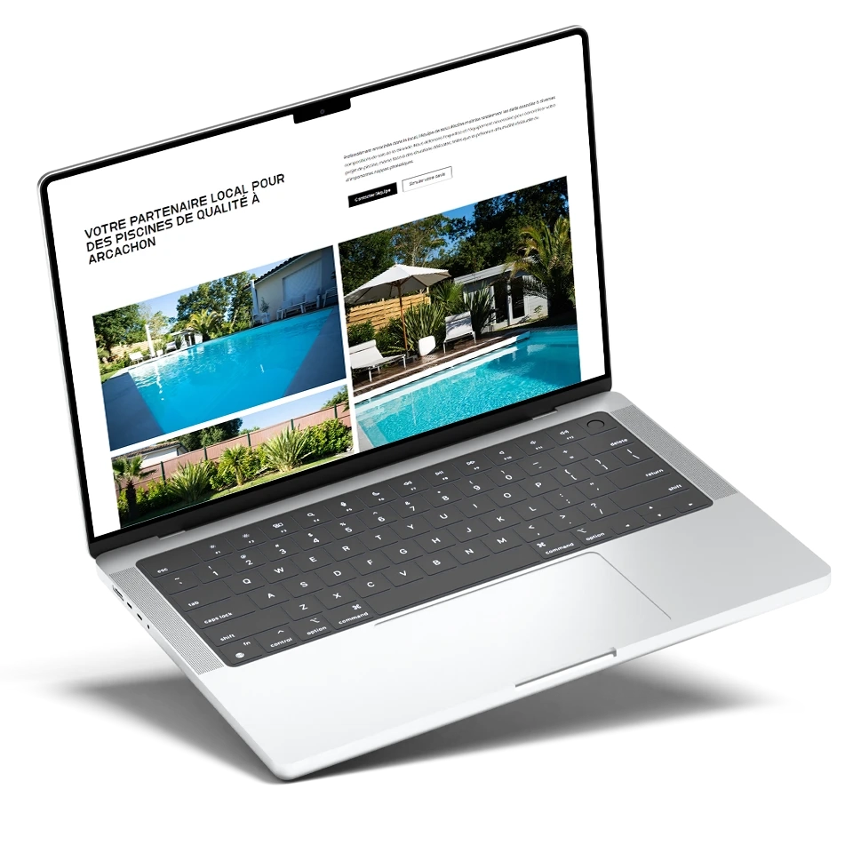 La stratégie SEO développée pour ce pisciniste professionnel s’est concentrée sur le référencement local avec un maillage géographique étendu. Nous avons optimisé le site pour les requêtes « pisciniste Arcachon« , « construction piscine Bordeaux« , « piscine maçonnée Gironde » et de nombreuses autres variations locales. L’architecture du site intègre des pages dédiées par zone géographique, optimisées selon les meilleures pratiques SEO technique.