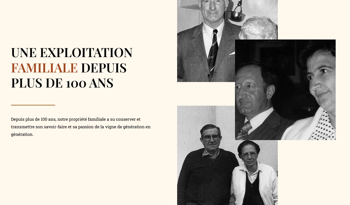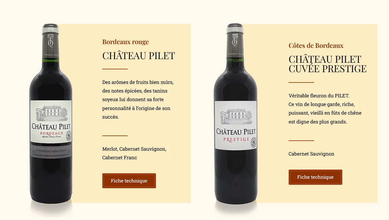 Présentation du patrimoine viticole : Le site met en valeur l’histoire familiale, le terroir et les méthodes de vinification traditionnelles. Chaque section présente les spécificités du domaine avec un design soigné alliant modernité et respect des codes viticoles classiques.